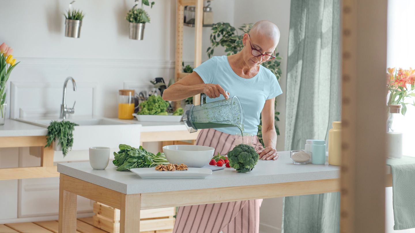 “When you’re feeling generally well, you’re encouraged to incorporate healthy eating practices,” says Vanessa Salino, RD, a board-certified specialist in oncology nutrition at Smilow Cancer Hospital in New Haven, Connecticut. “Good nutrition should focus on a balance of protein, complex carbohydrates, healthy fats, and fluids.”
